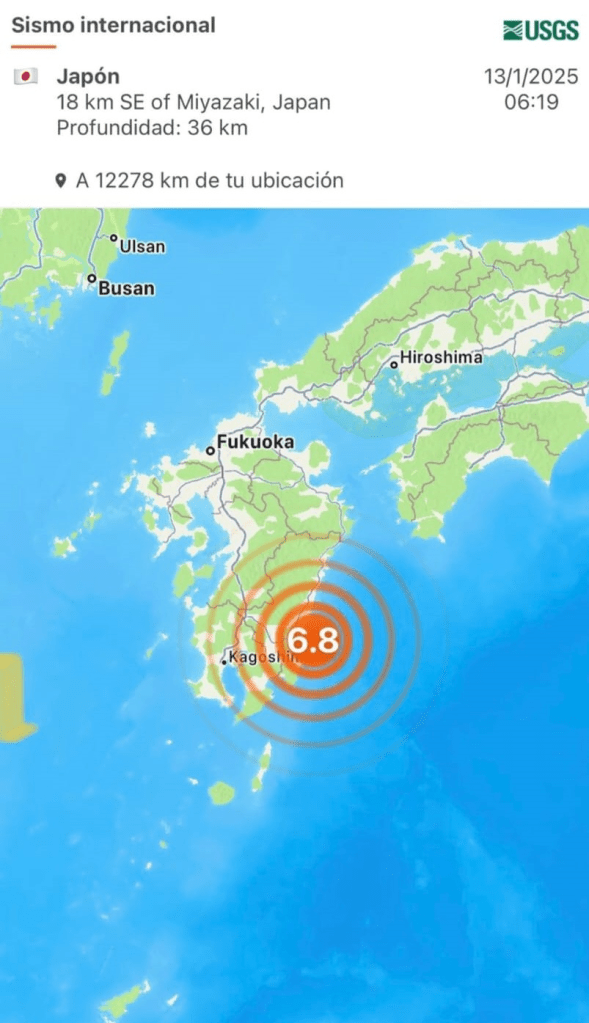 Este lunes 13 de enero se registró un #sismo de magnitud preliminar 6.9 en la región de Kyushu ubicada al suroeste de Japón.