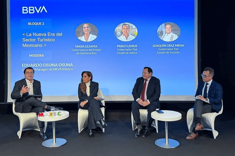 Durante su participación en el encuentro «Conectando Oportunidades en el Sector Turístico», organizado por BBVA en la FITUR, el gobernador Pablo Lemus anunció que Jalisco recibió a más de 29 millones de visitantes el año pasado, consolidándose como uno de los destinos turísticos más populares de México, y subrayó las fortalezas de Jalisco, como su rica oferta cultural, sus 12 Pueblos Mágicos y productos con denominación de origen reconocidos mundialmente.