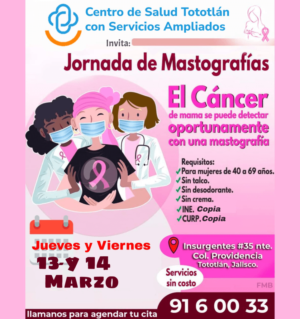 Acude al Centro de Salud, márcanos o manda mensaje para agendarte