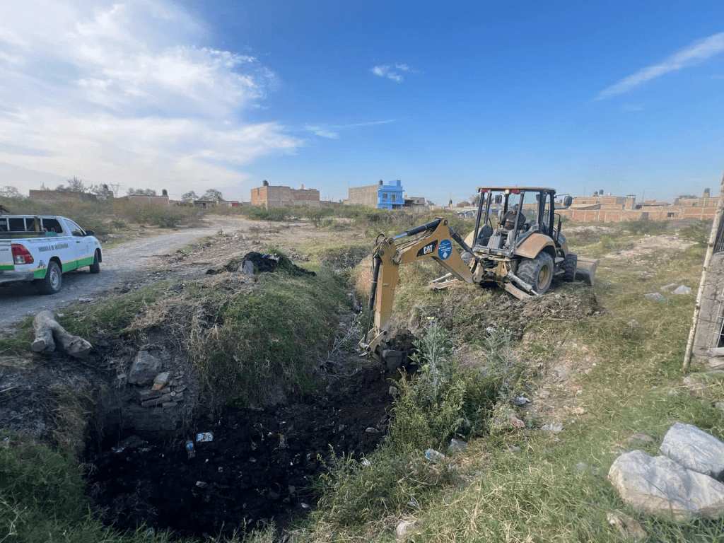 El Gobierno Municipal inicia trabajos preventivos para el temporal de lluvias, a través de la Jefatura del Módulo de Maquinaria, se realizó la limpieza de los bordos del desagüe en la colonia el Abrevadero.