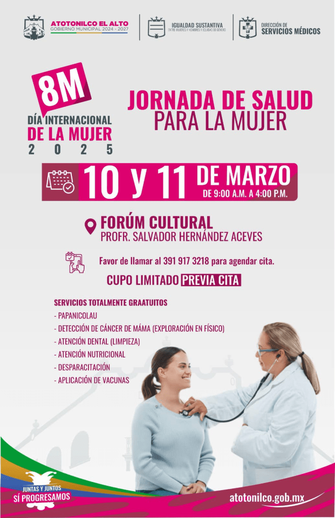 Los próximos 10 y 11 de marzo, la Dirección de Igualdad Sustantiva entre Hombres y Mujeres y Equidad de Género llevará a cabo una Jornada de Salud con servicios totalmente gratuitos.