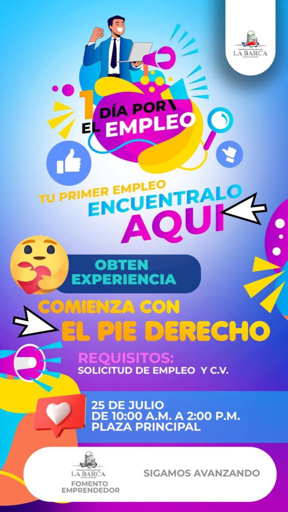 La Dirección de Desarrollo Económico del municipio de La Barca, en conjunto con la Jefatura de Fomento Emprendedor y el programa «Un día por el empleo», ha anunciado la iniciativa «Tu Primer Empleo», orientada a jóvenes mayores de 18 años que buscan integrarse por primera vez al mundo laboral.