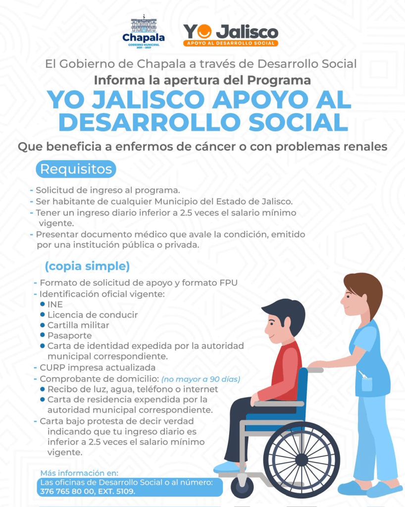 El Gobierno Municipal de Chapala, a través del área de Desarrollo Social, informa a la ciudadanía sobre la apertura de dos programas estatales que buscan apoyar a quienes más lo necesitan: