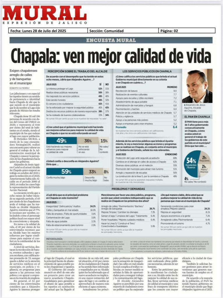 El trabajo sostenido y cercano de las autoridades municipales continúa dando frutos. De acuerdo con los resultados de la más reciente encuesta publicada por el diario Mural, la percepción ciudadana sobre el rumbo del municipio ha mostrado una tendencia positiva, reflejando un clima de confianza en el ejercicio público local.