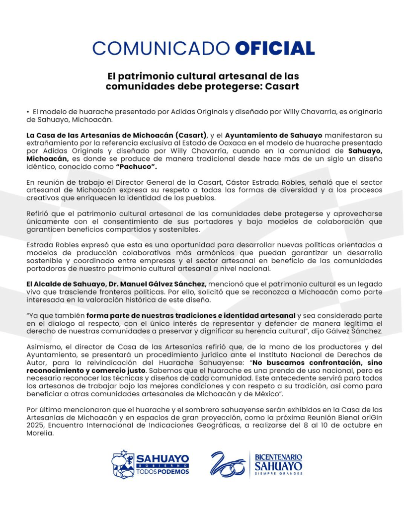 Autoridades municipales destacaron que el huarache tipo Pachuco no solo es un símbolo de tradición, sino también una fuente de sustento para decenas de familias artesanas. “La cultura no se apropia, se honra”, señalaron, reafirmando el compromiso de proteger y promover el legado cultural de Sahuayo.