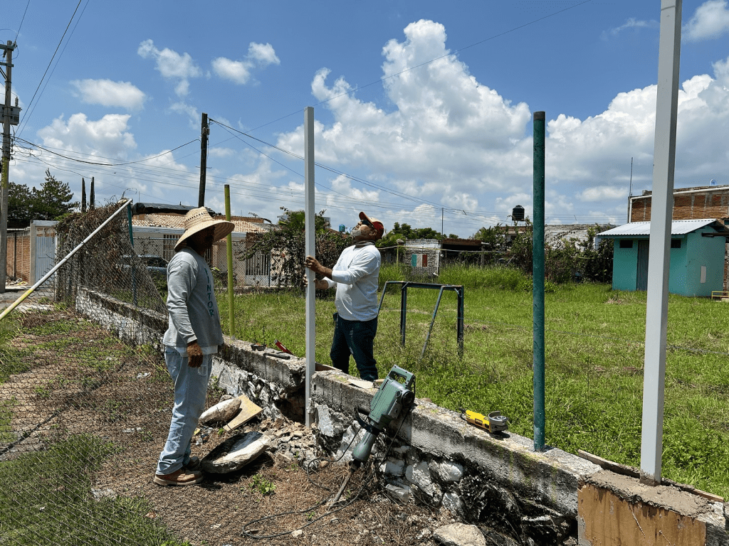 Entre las acciones más recientes, destaca la instalación de una nueva cerca perimetral en el Preescolar de San Miguel de la Paz, brindando mayor seguridad y delimitación adecuada para las y los pequeños que asisten diariamente.