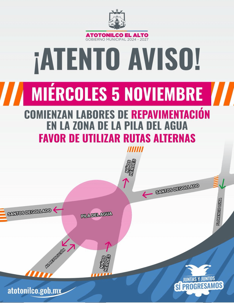 El Gobierno Municipal de Atotonilco el Alto continúa impulsando acciones para mejorar la infraestructura vial del municipio, con trabajos de repavimentación en la zona de la Pila del Agua, una de las áreas clave para la movilidad local.