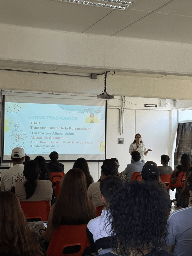La ponencia fue dirigida a estudiantes y docentes, con el objetivo de sensibilizar sobre la importancia de atender la salud mental en jóvenes y promover estrategias integrales de prevención y acompañamiento.